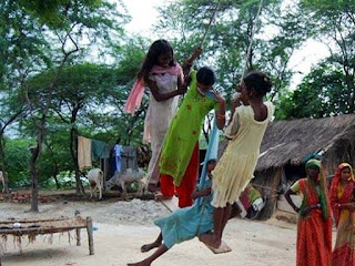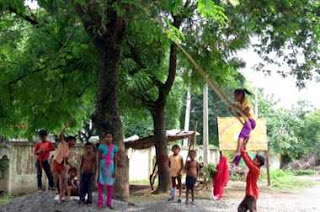सावन के महीने में किसी भी गाँव मे जाते थे तो शायद ही किसी पेड़ की मजबूत डाली होती थी जिस पर झूला न पड़ा हो । क्या छोटे बच्चे, बच्ची और क्या उस गाँव की बड़ी बेटियां जो सावन में मायके आई हुई होती थीं मिलकर झूले का लुत्फ उठाते थे , साथ साथ गाने भी गाए जाते थे एक गाना तो बड़ा फेमस था ”झूला तो पड़ गए , अमुआ की डाल पे जी” ।